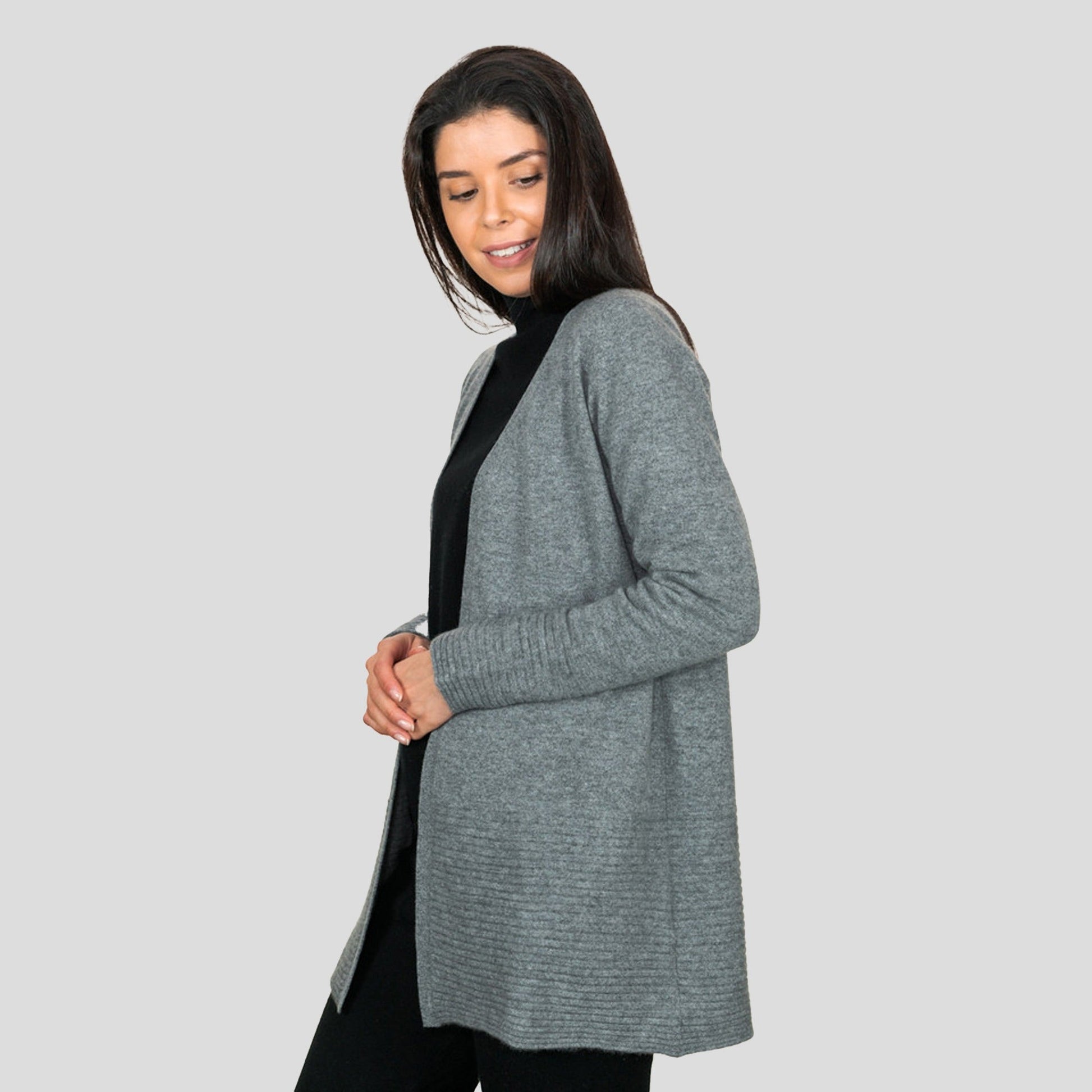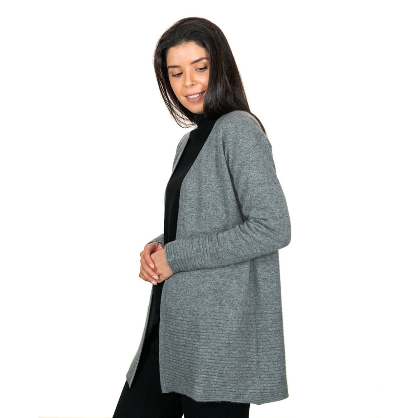 An elegant Long Swing Coat with soft details, perfect for layering. Made from 100% cashmere, this long swing coat with bottom and matching sleeve detailing, can be worn loose or belted for an extra stylish touch- Contents: 100% Cashmere | 2 ply | Regular Long Fit